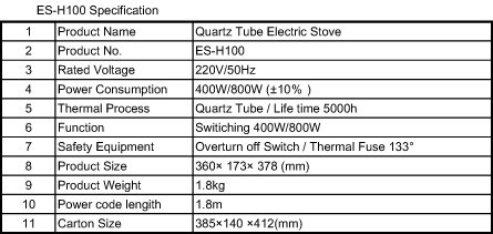 SENSHO Quartz Tube Electric Stove ES-100(W)